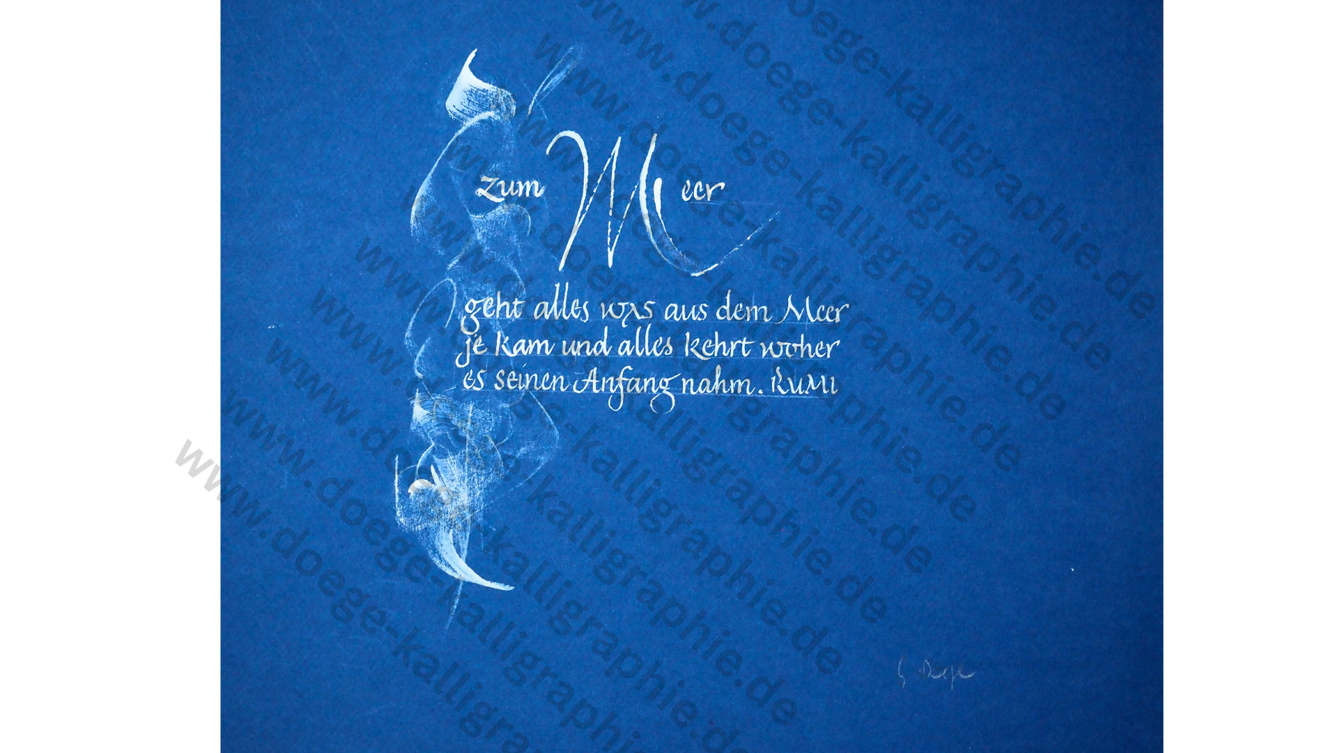 Erst nach dem Ende seiner beruflichen Laufbahn begann Gerd Doege mit der Erstellung von Kalligraphien. Er arbeitete in führenden Positionen in der Energiewirtschaft und suchte schon vor über 30 Jahren nach einem Ausgleich zu seinem von Technik und Zahlen geprägten Arbeitsalltag. Gerd Doege war schon immer an Sprache und Philosophie interessiert, fand mittelalterliche Handschriften faszinierend und stellte fest, dass die ruhige Hand, die man zum schönen Schreiben braucht, mit einer inneren Ruhe einhergehen muss. Die Kalligraphie wurde sein mentaler Ausgleich und gleichzeitig eine spirituelle Inspiration.